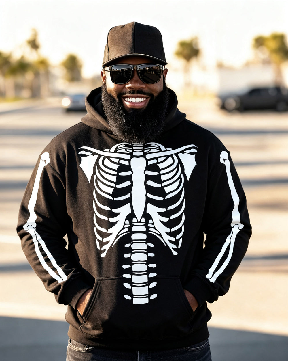 Big & Tall Men's Halloween Funny Skeleton Print Long Sleeve Hoodie