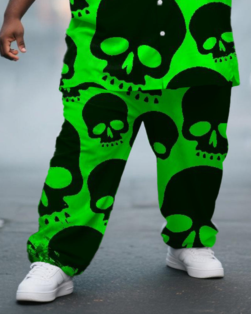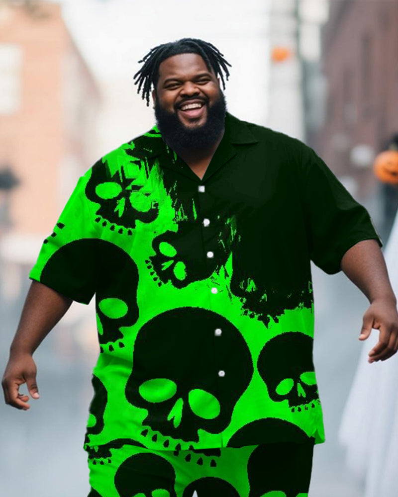 Big & Tall Men's Halloween Green Skull Print Short Sleeve Shirt Trousers Suit