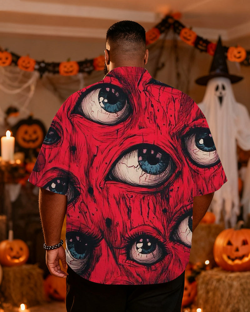 Big & Tall Men's Halloween Horror Eyes Print Short Sleeve Shirt