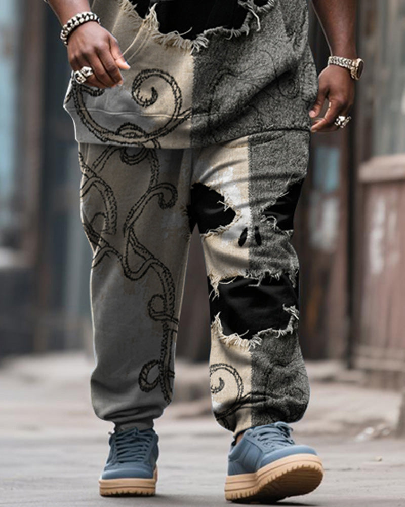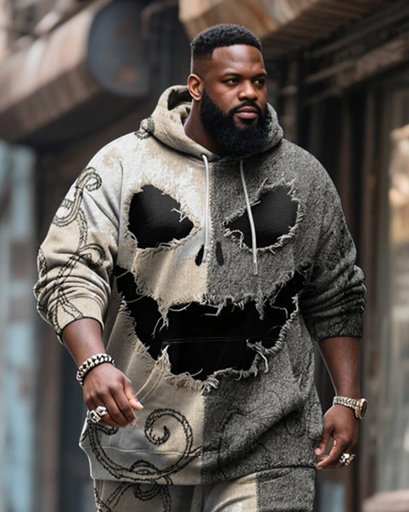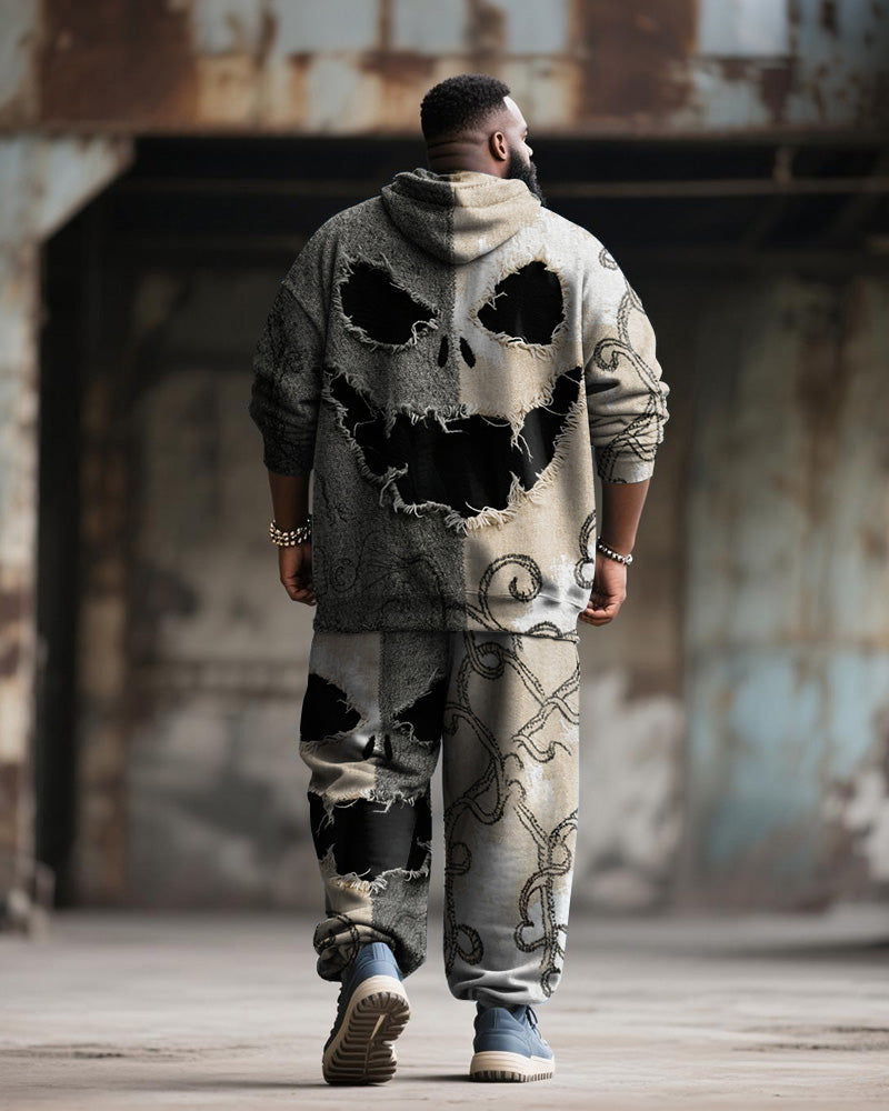 Big & Tall Men's Halloween Khakis Skull Face Contrast Stitching Print Hoodie Suit