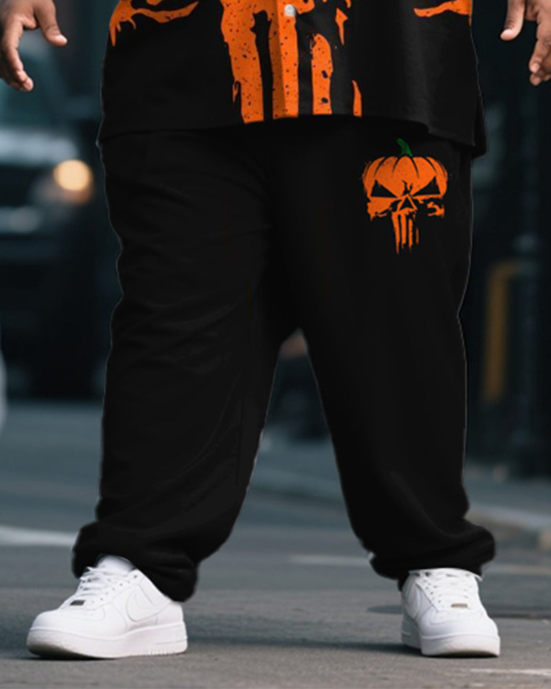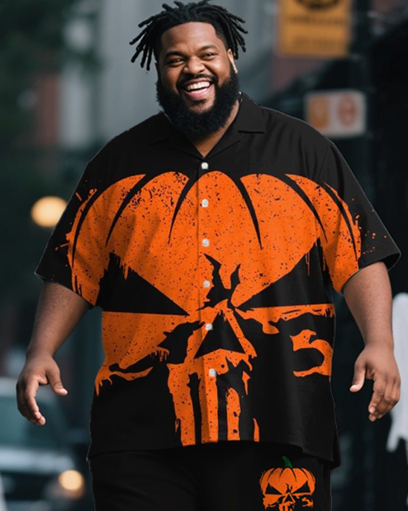 Big & Tall Men's Halloween Pumpkin Skull Print Short Sleeve Shirt Trousers Suit