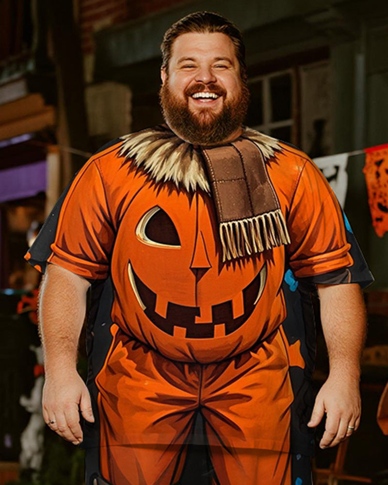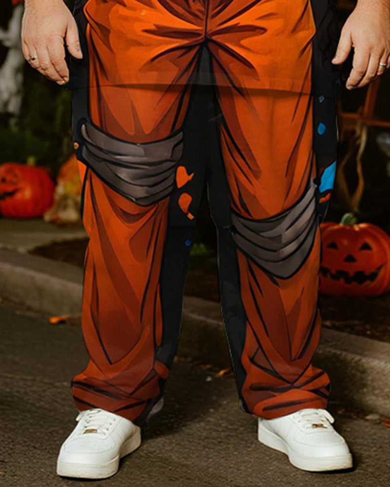 Big & Tall Men's Halloween Pumpkin Straw Cosplay Printed T-Shirt Trousers Suit