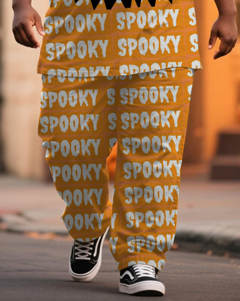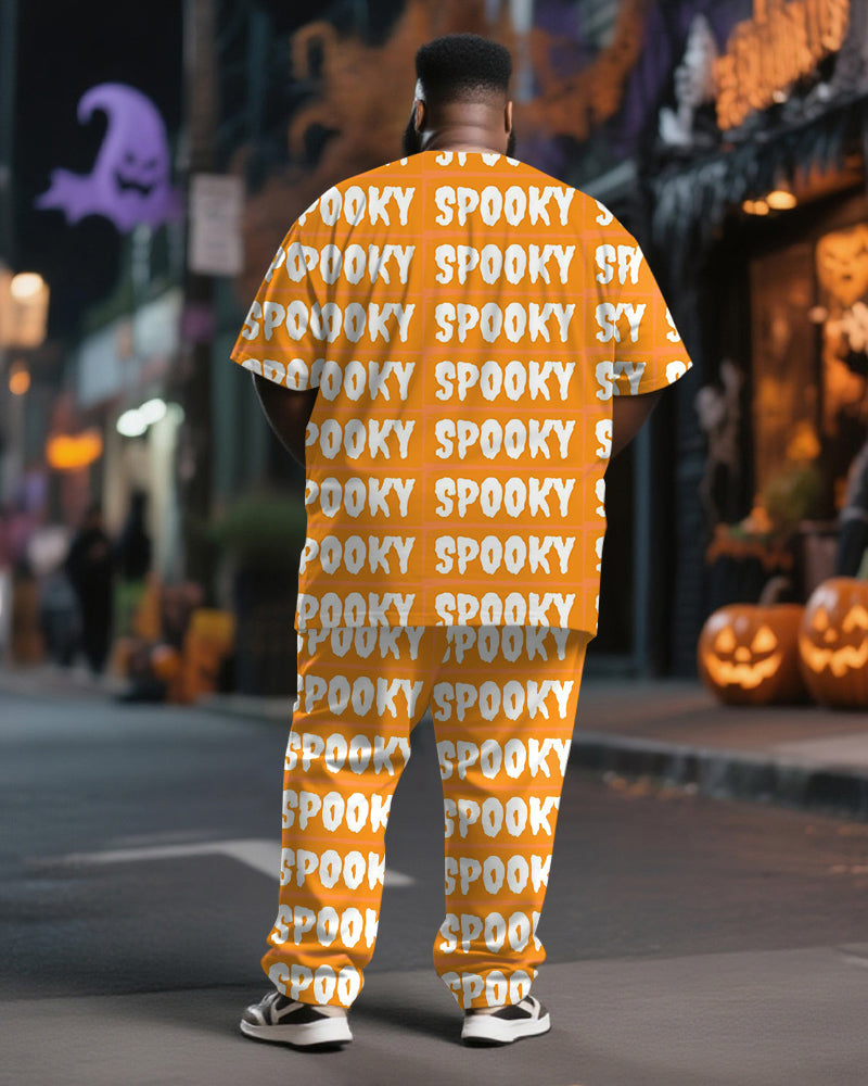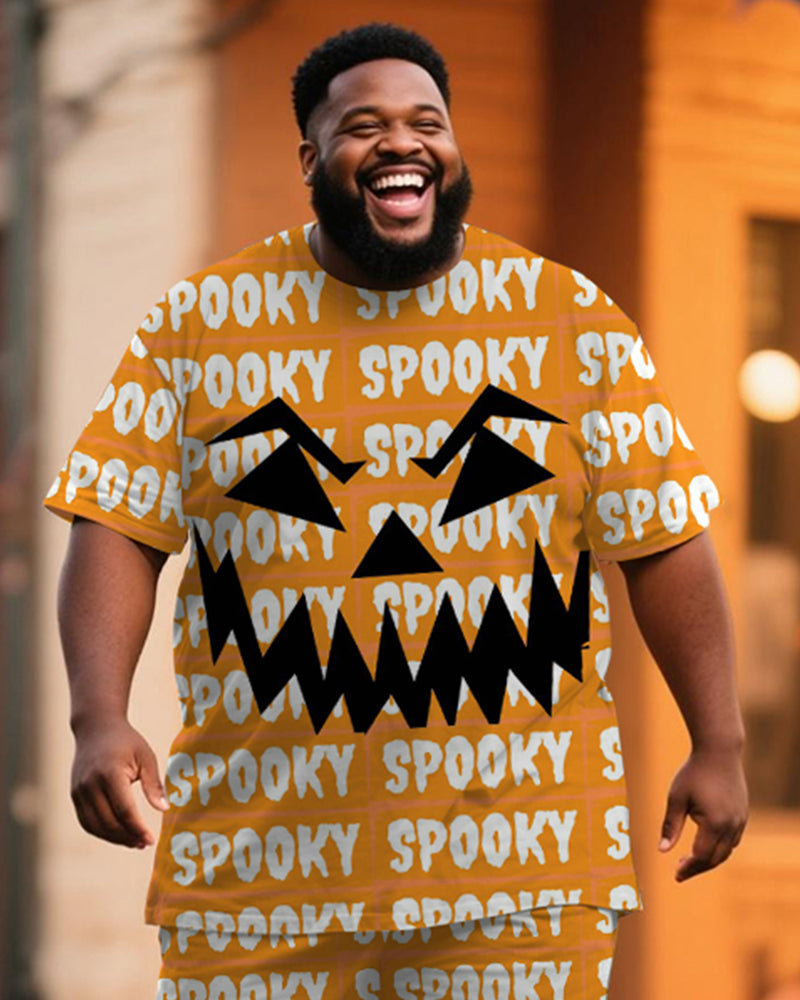 Big & Tall Men's Halloween SPOOKY Pumpkin Lantern Printed T-Shirt Trousers Suit