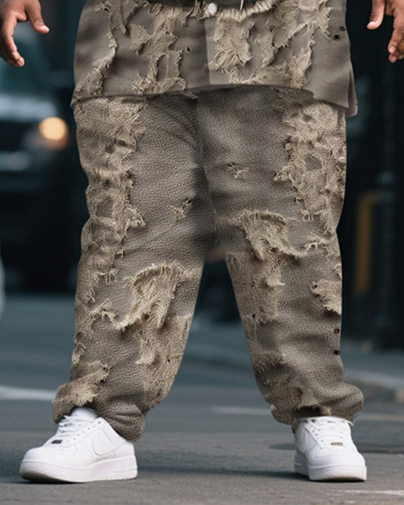 Big & Tall Men's Halloween Tattered Pumpkin Head Expression Print Short Sleeve Shirt Pants Suit