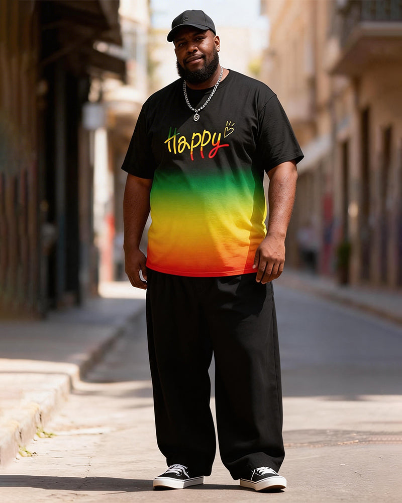 Big & Tall Men's Happy Gradient Reggae Color Print T-Shirt Pants Set