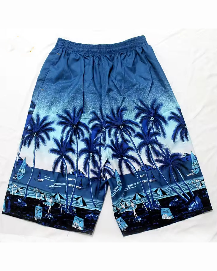 Big & Tall Men's Hawaii. Navy Blue Layered Green Coconut Tree Beach Pants