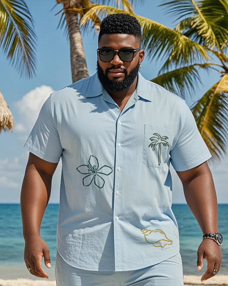 Big & Tall Men's Hawaii Vacation Blue Graffiti Print Pocket Shirt Shorts Suit