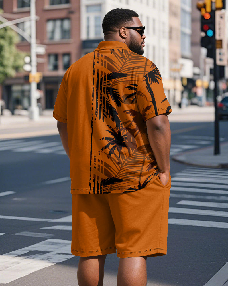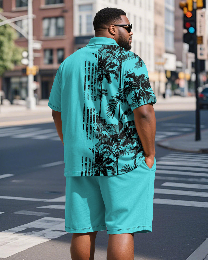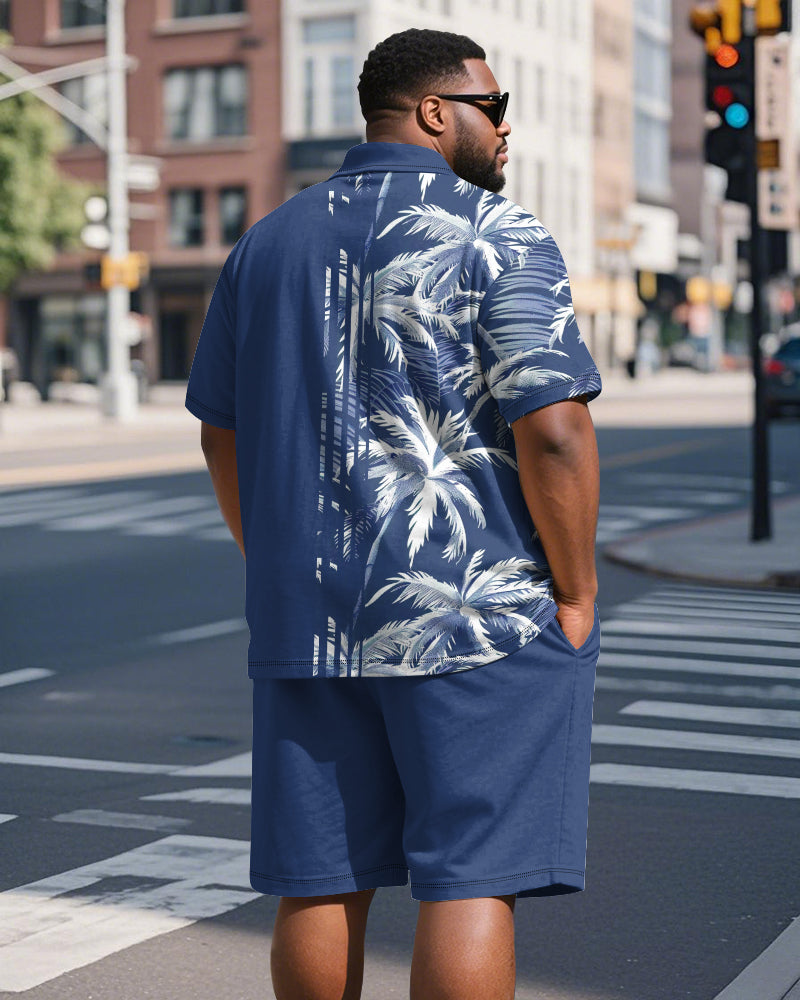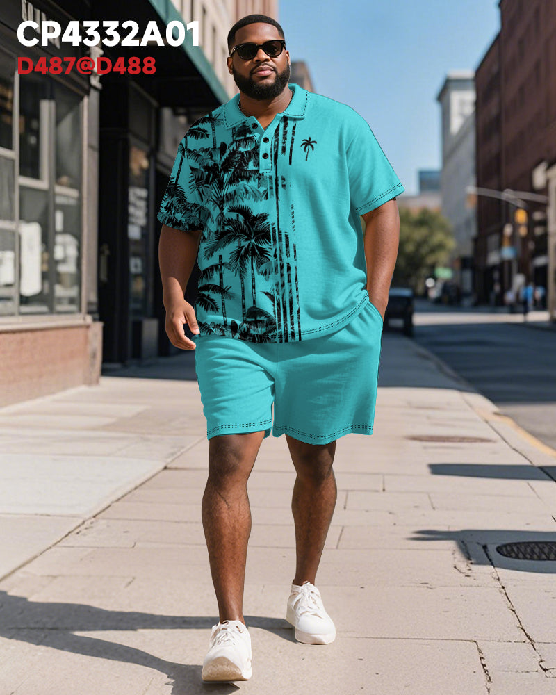 Big & Tall Men's Hawaiian Coconut Stripe Print Short Sleeve Polo Shirt Shorts Suit