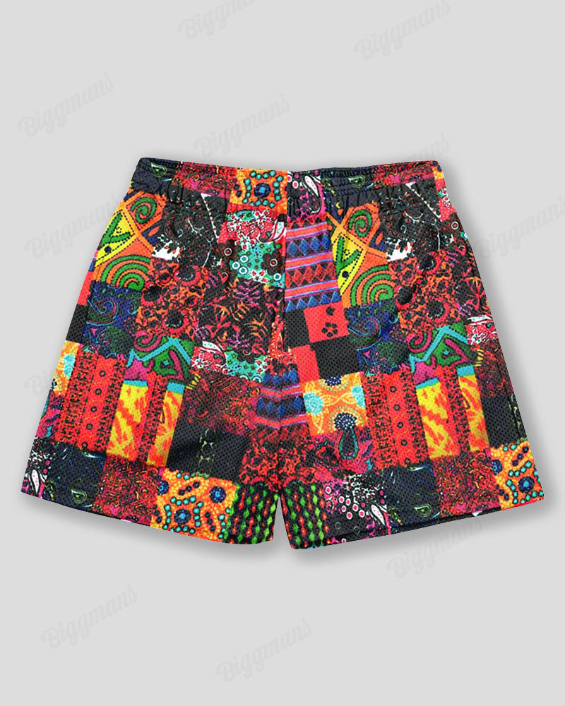 Big & Tall Men's Hawaiian Ethnic Graffiti Print Sports Mesh Quick-Dry Shorts