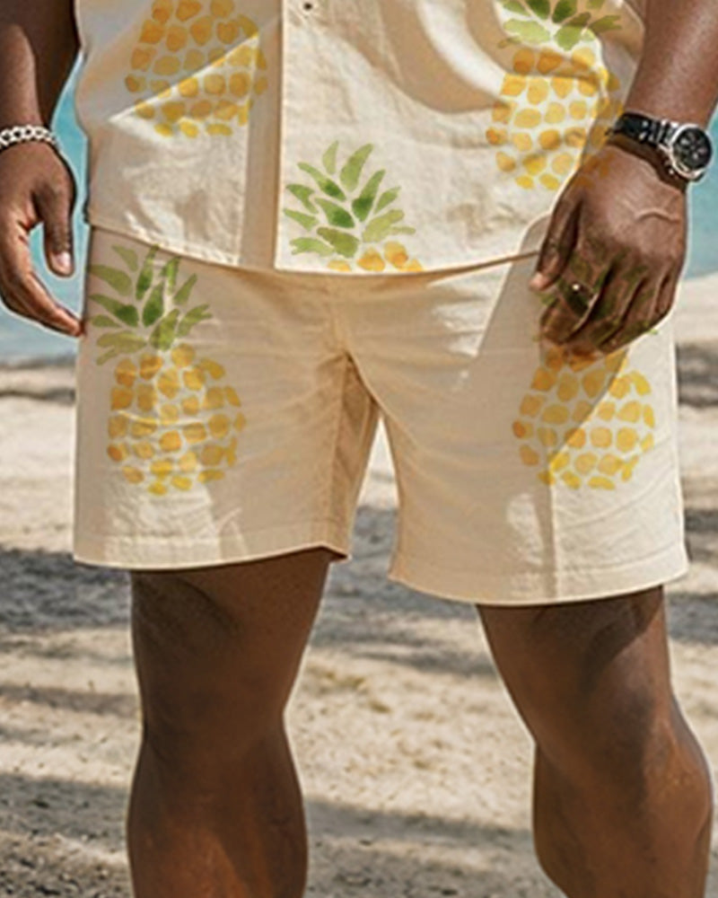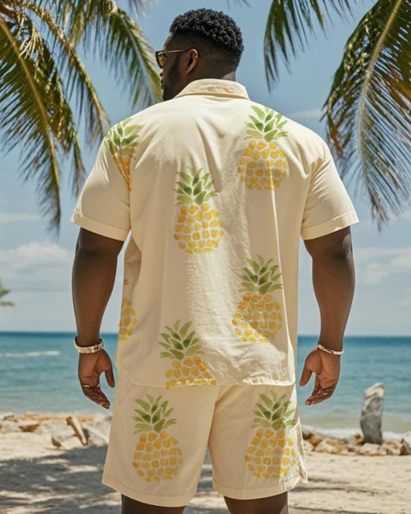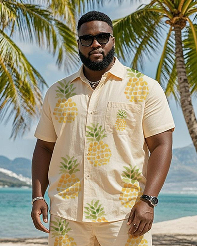 Big & Tall Men's Hawaiian Holiday Yellow Pineapple Print Pocket Shirt Shorts Suit