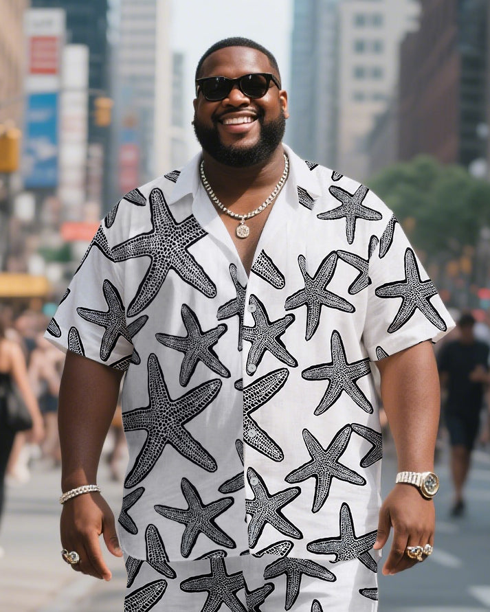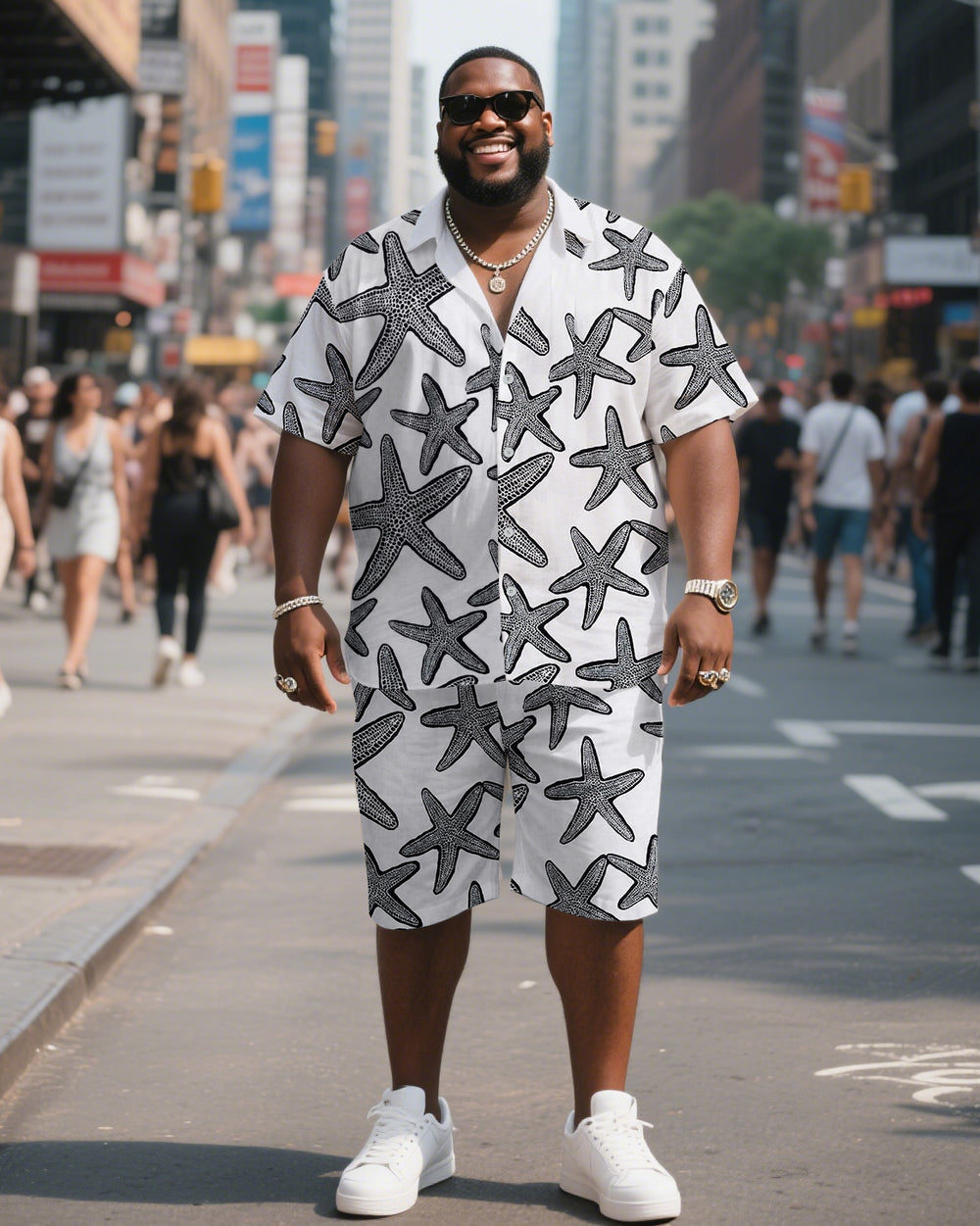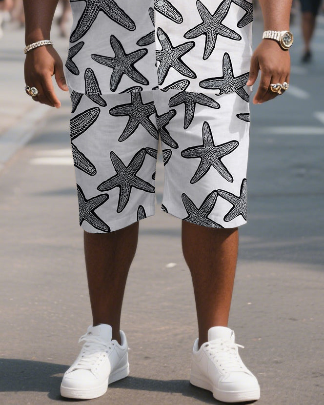 Big & Tall Men's Hawaiian Starfish Print Shirt Shorts Suit