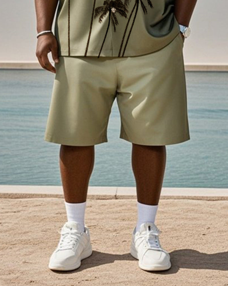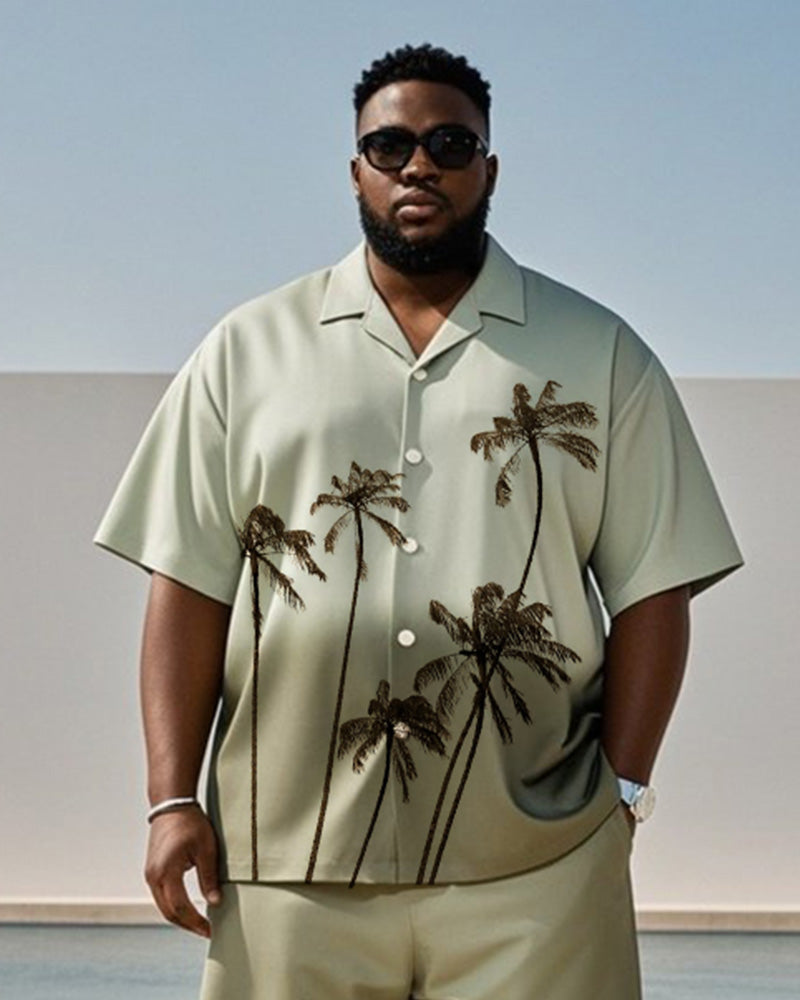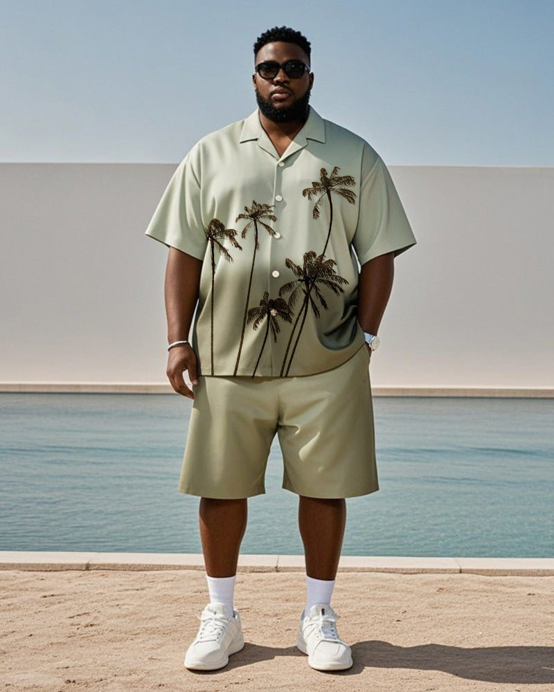 Big & Tall Men's Hawaiian Vacation Army Green Gradient Painting Coconut Tree Print Shirt Shorts Suit