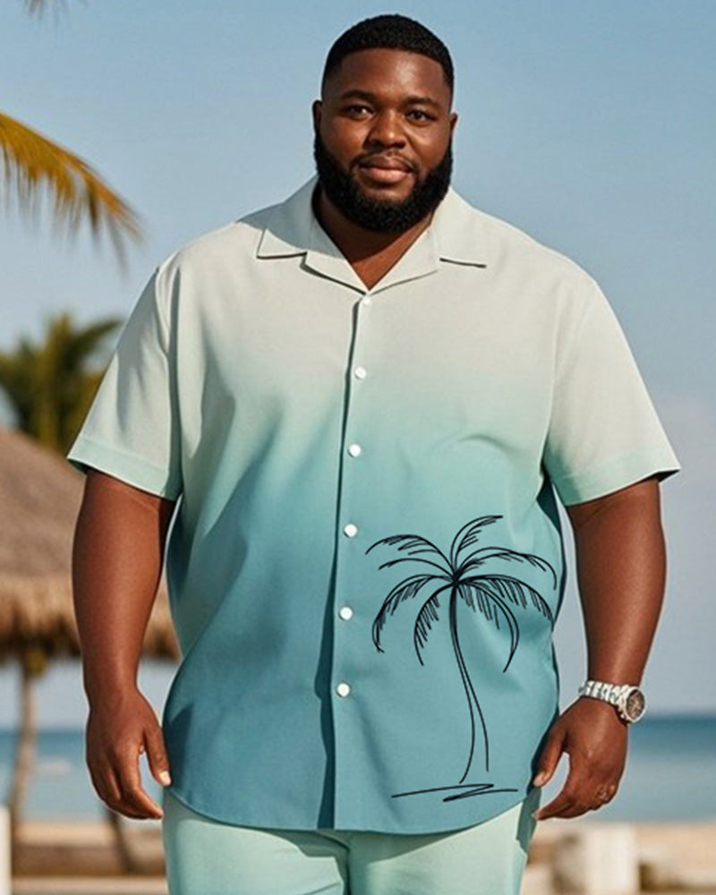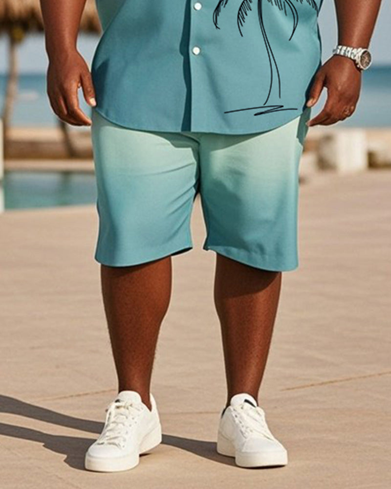 Big & Tall Men's Hawaiian Vacation Blue Gradient Line Coconut Tree Print Shirt Shorts Suit