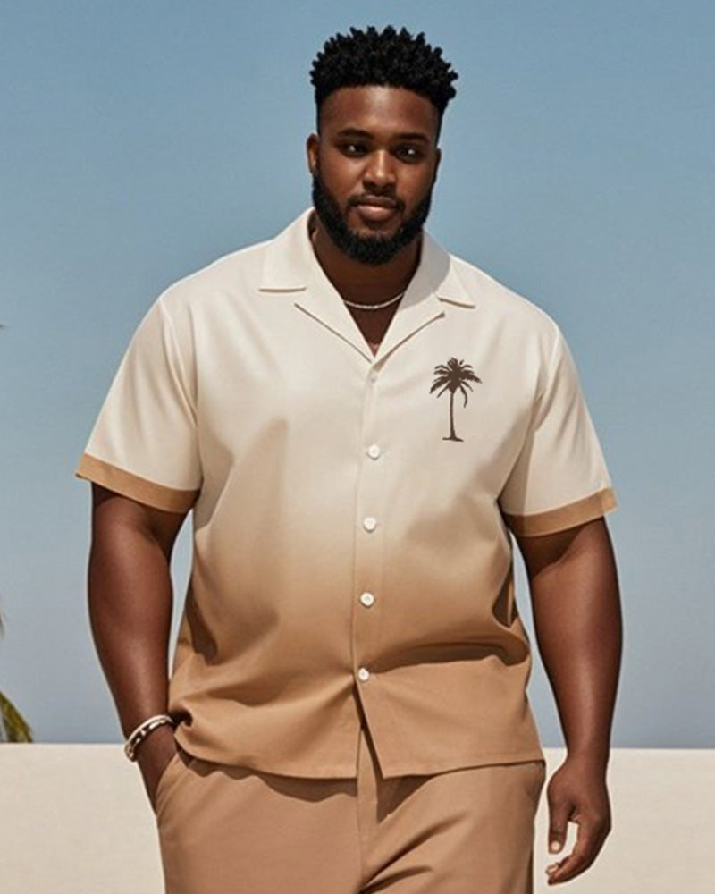 Big & Tall Men's Hawaiian Vacation Brown Gradient Coconut Tree Print Shirt Shorts Suit