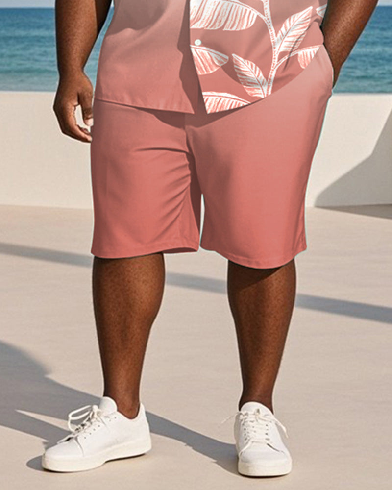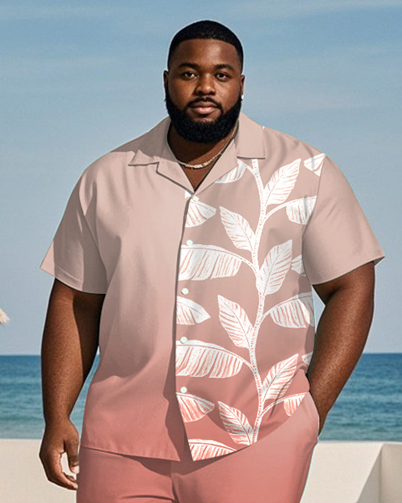 Big & Tall Men's Hawaiian Vacation Pink Gradient Leaf Print Shirt Shorts Suit