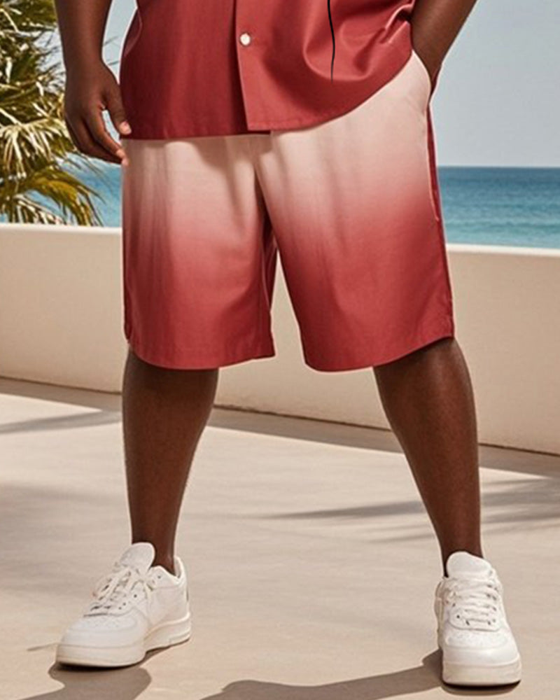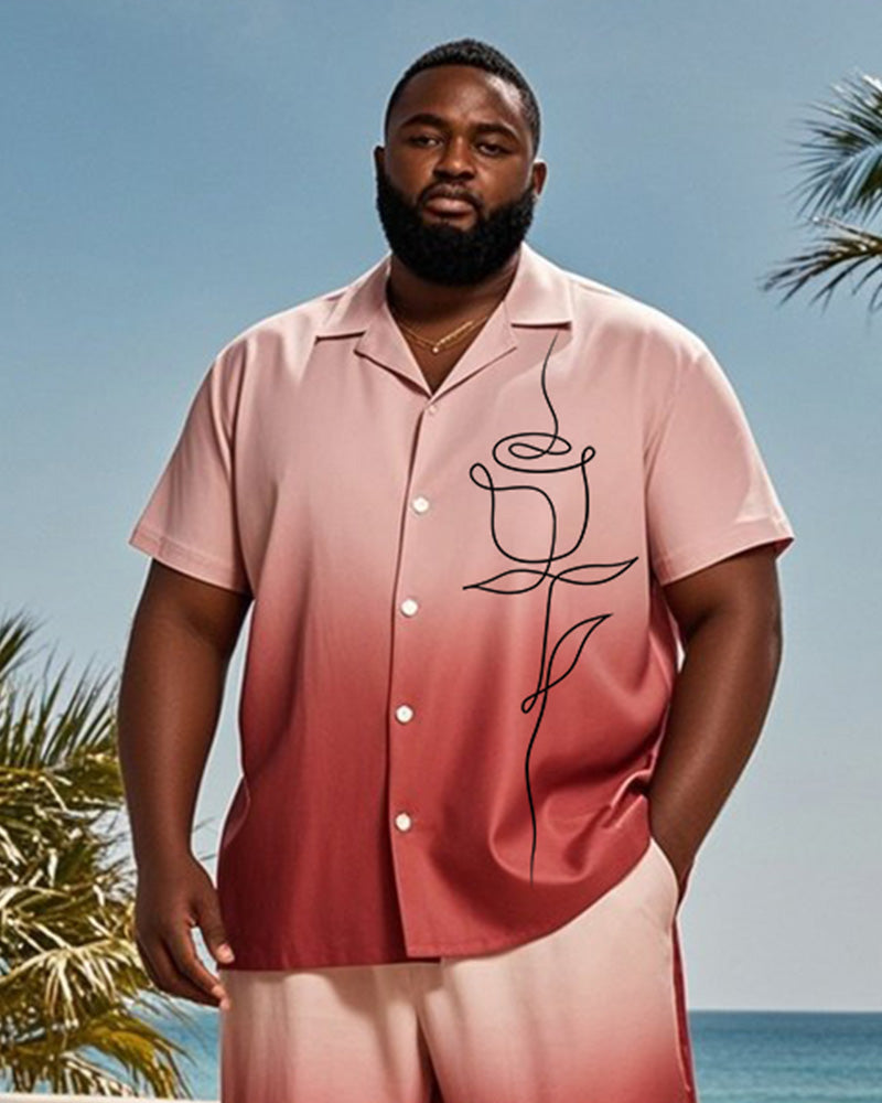 Big & Tall Men's Hawaiian Vacation Red Gradient Line Rose Print Shirt Shorts Suit