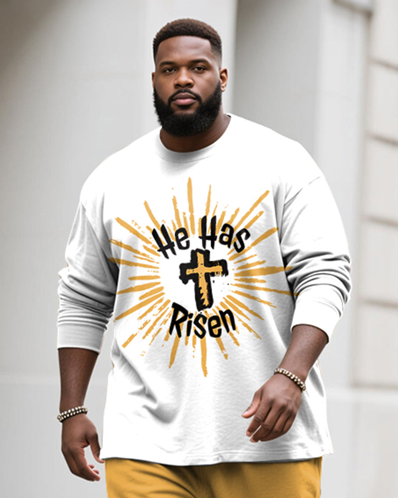 Big & Tall Men's He Has Risen Graffiti Letter Print Long Sleeve T-Shirt Pants Set