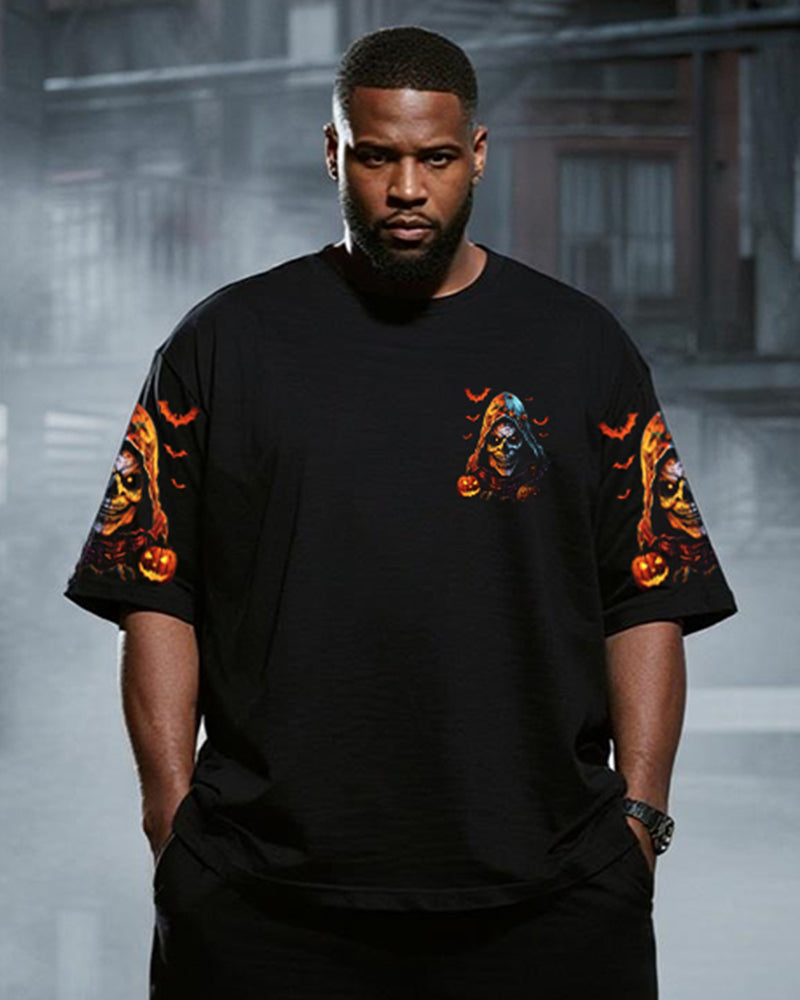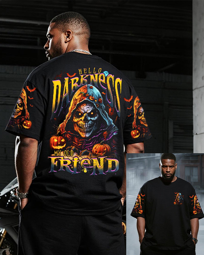 Big & Tall Men's HELLO DARKNESS MY OLD FRIEND HALLOWEEN ALL OVER Printed T-shirt Long Pants Set