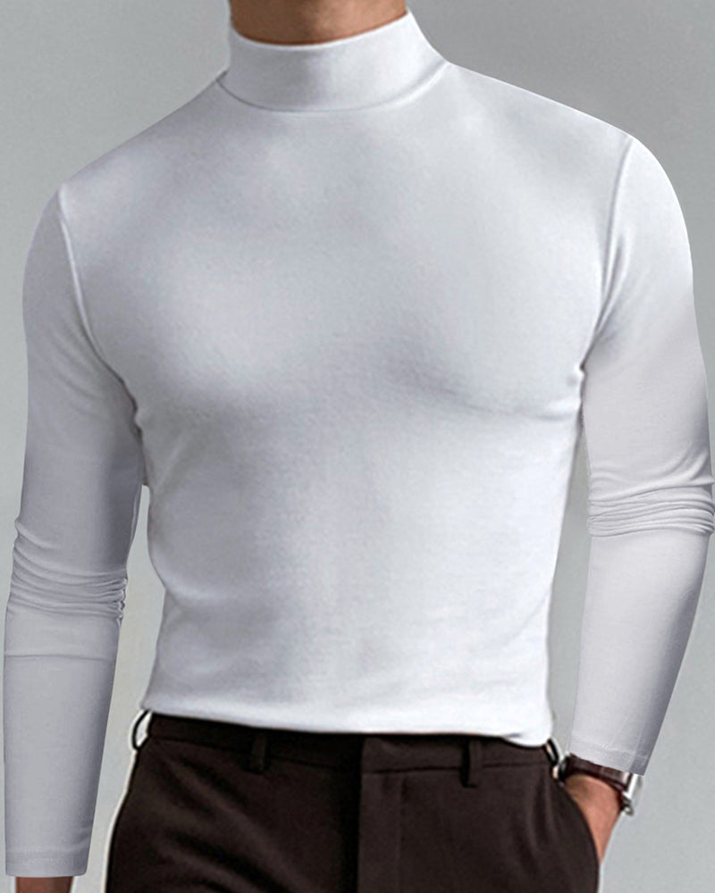 • Style: High Neck Solid Color Long Sleeve T-Shirt