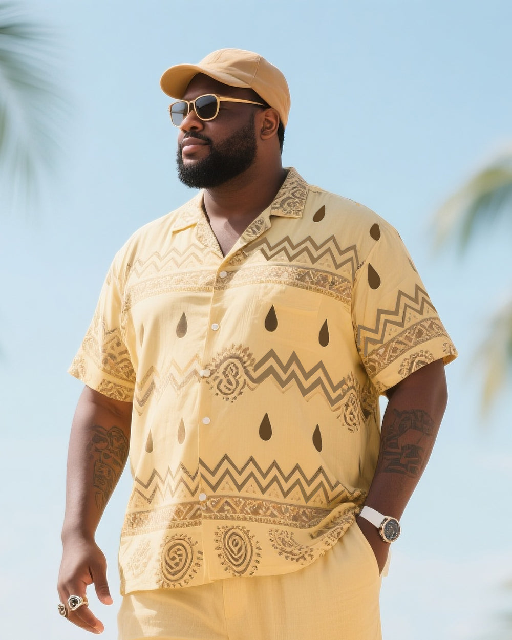 Big & Tall Men's Holiday Style High Luxury Teardrop Paisley Print Short Sleeve Shirt Pants Suit