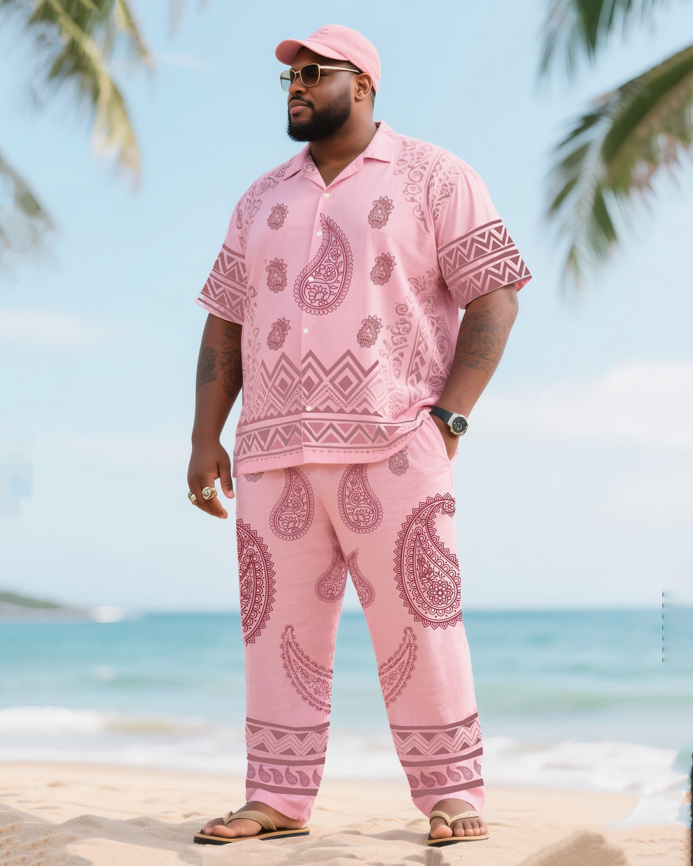 Big & Tall Men's Holiday Style Paisley Printed Short Sleeve Shirt Pants Suit