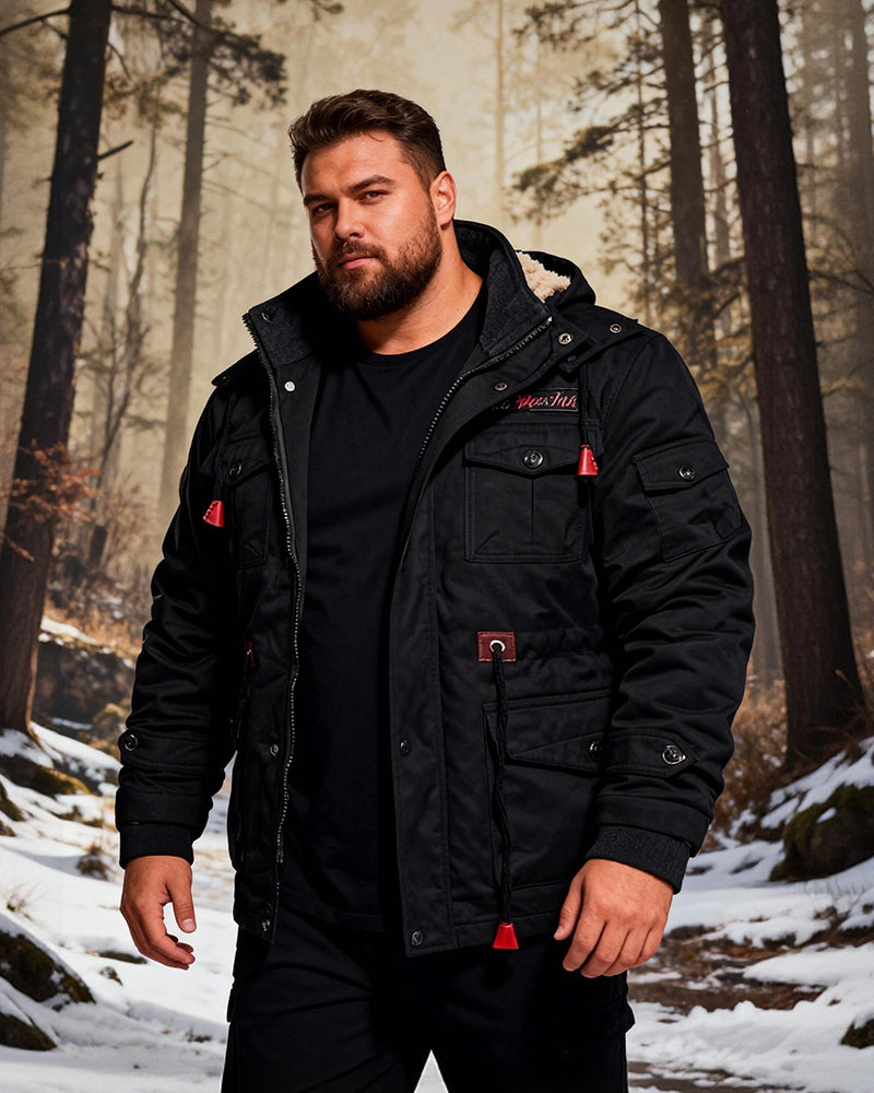 Big & Tall Men's Hooded Padded Frock Jacket Jacket M-5XL