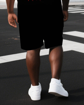 Big & Tall Men's I AM THE MONSTER Punk Style Back Lettering Short-Sleeve T-shirt 2-Piece Set