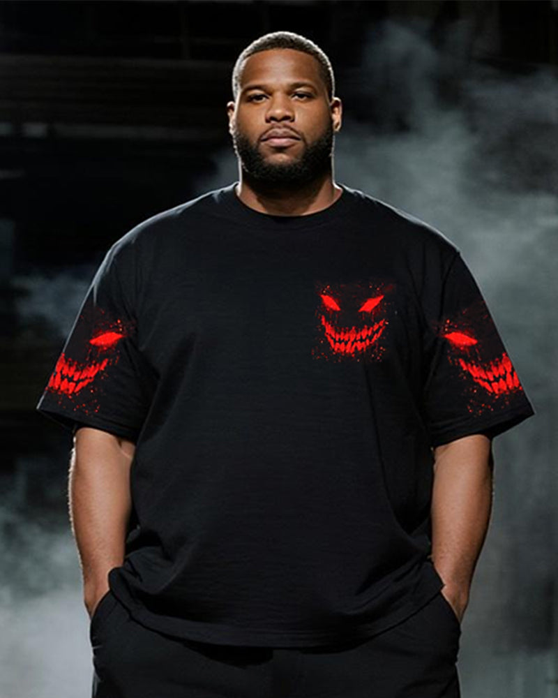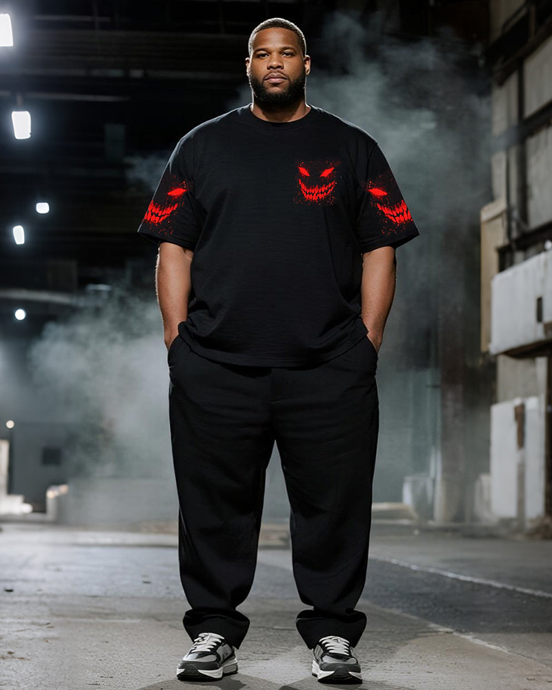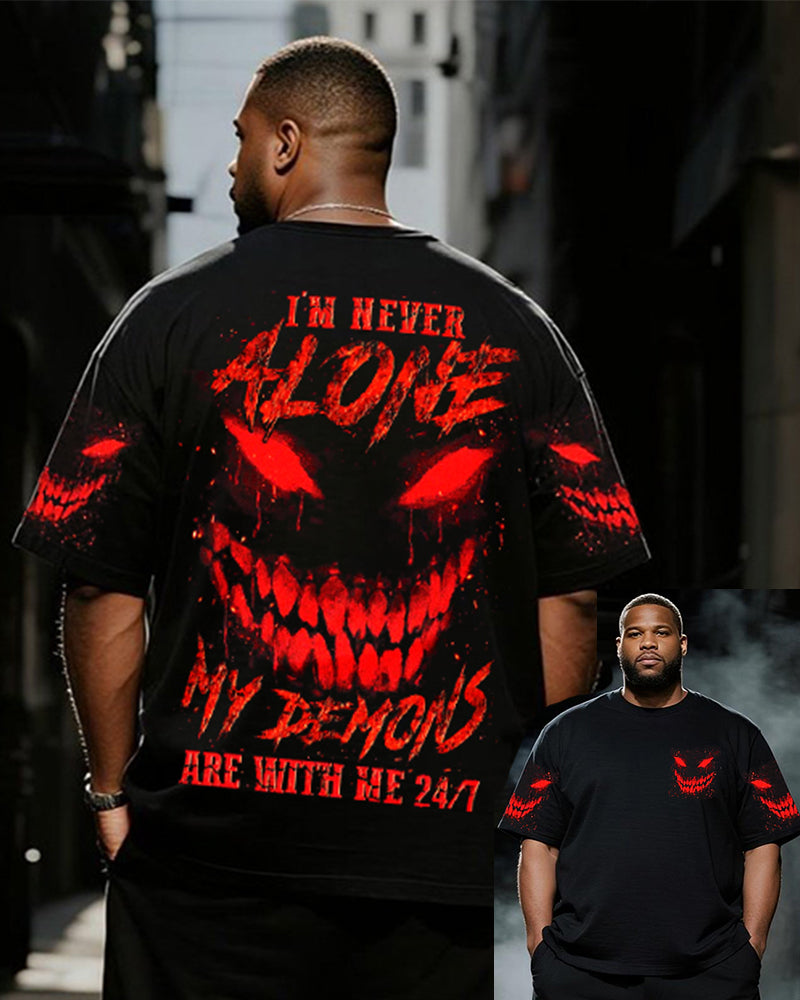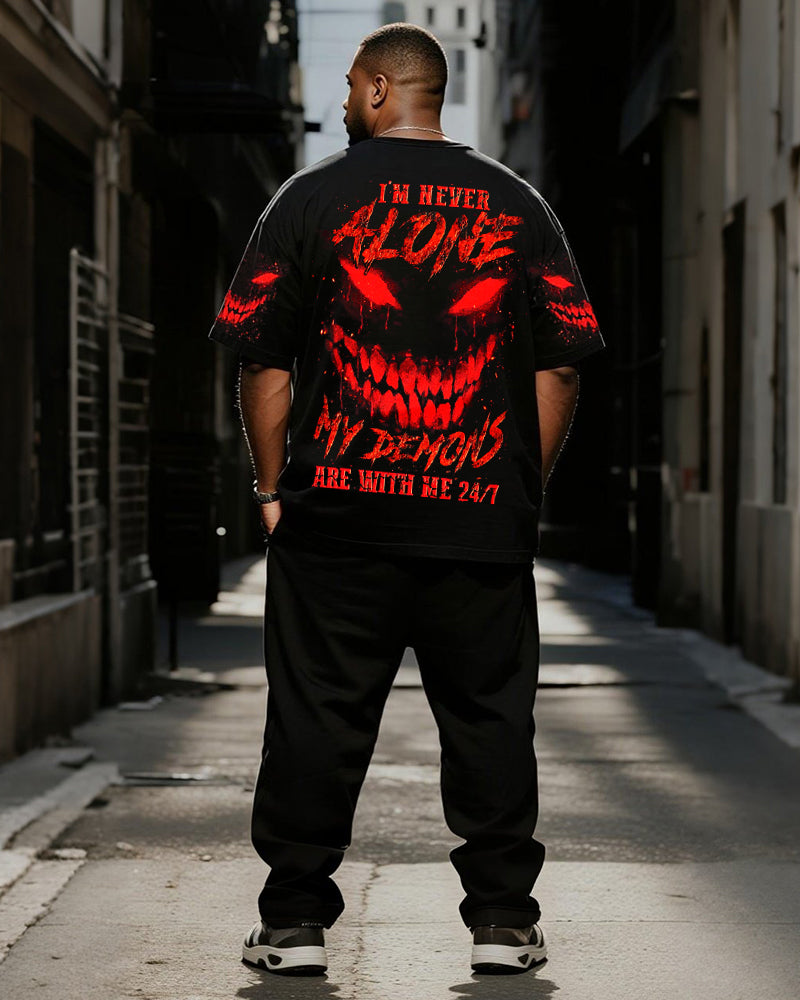 Big & Tall Men's I'M NEVER ALONE SKULL DEMON ALL OVER Printed T-shirt Long Pants Set