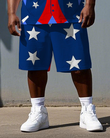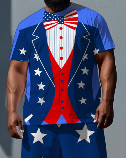 Big & Tall Men's Independence Day Cosplay Suit Print Casual Short-Sleeve T-shirt Shorts Set