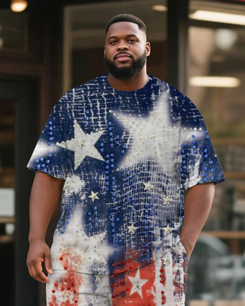 Big & Tall Men's Independence Day Star Print Round Neck Short Sleeve T-Shirt Shorts Suit