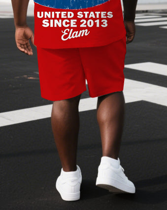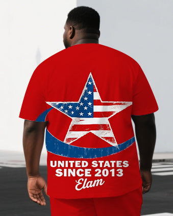 Big & Tall Men's Independence Day Stars United States Back Print Short-Sleeve T-shirt Shorts Set
