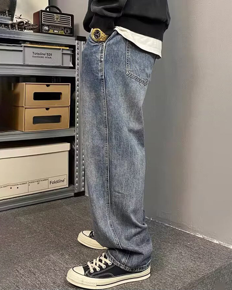 Big & Tall Men's Japanese Vintage Washed Jeans  M-8XL