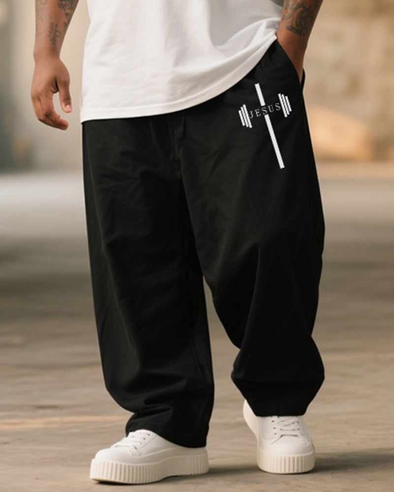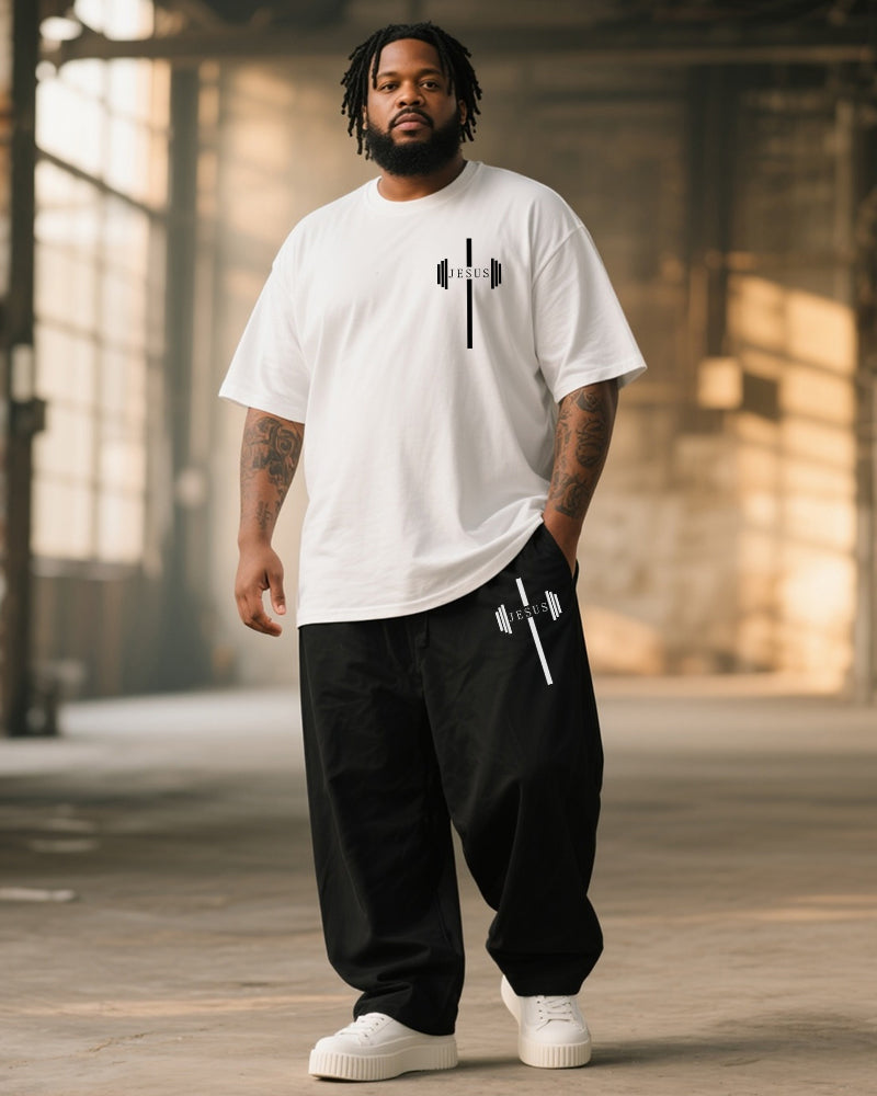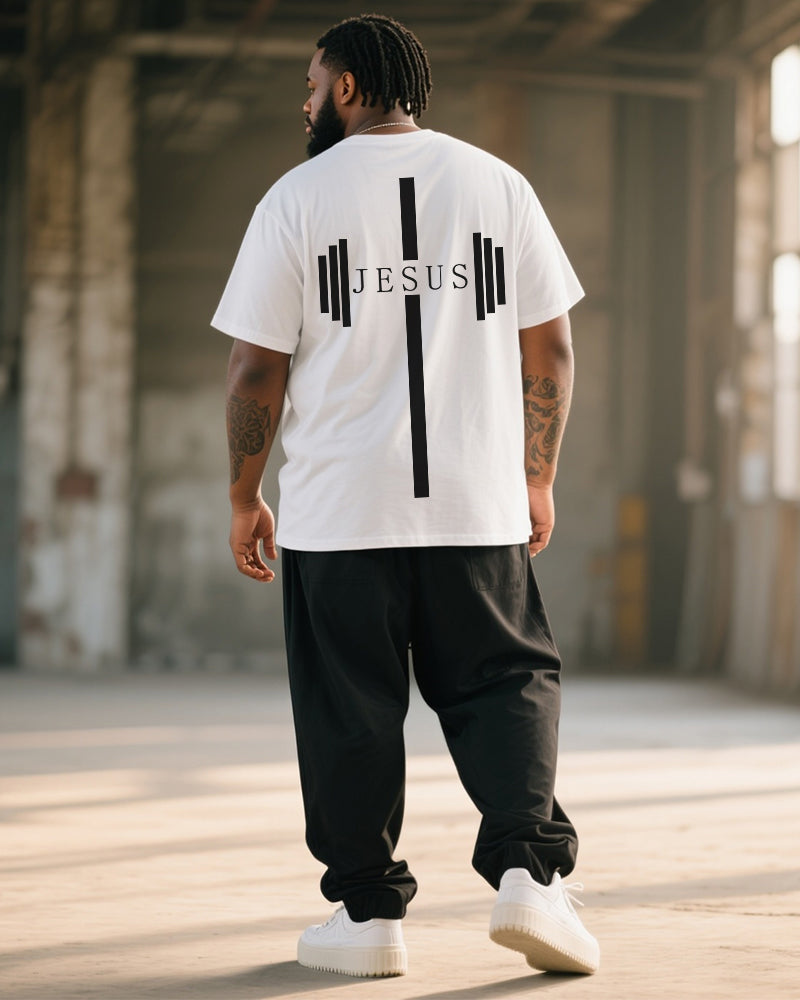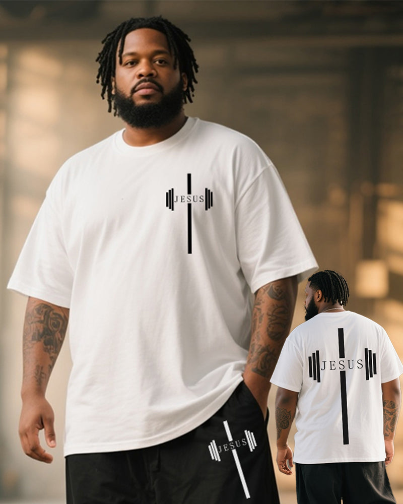 Big & Tall Men's Jesus Dumbbell Striped Printed T-Shirt Trousers Suit