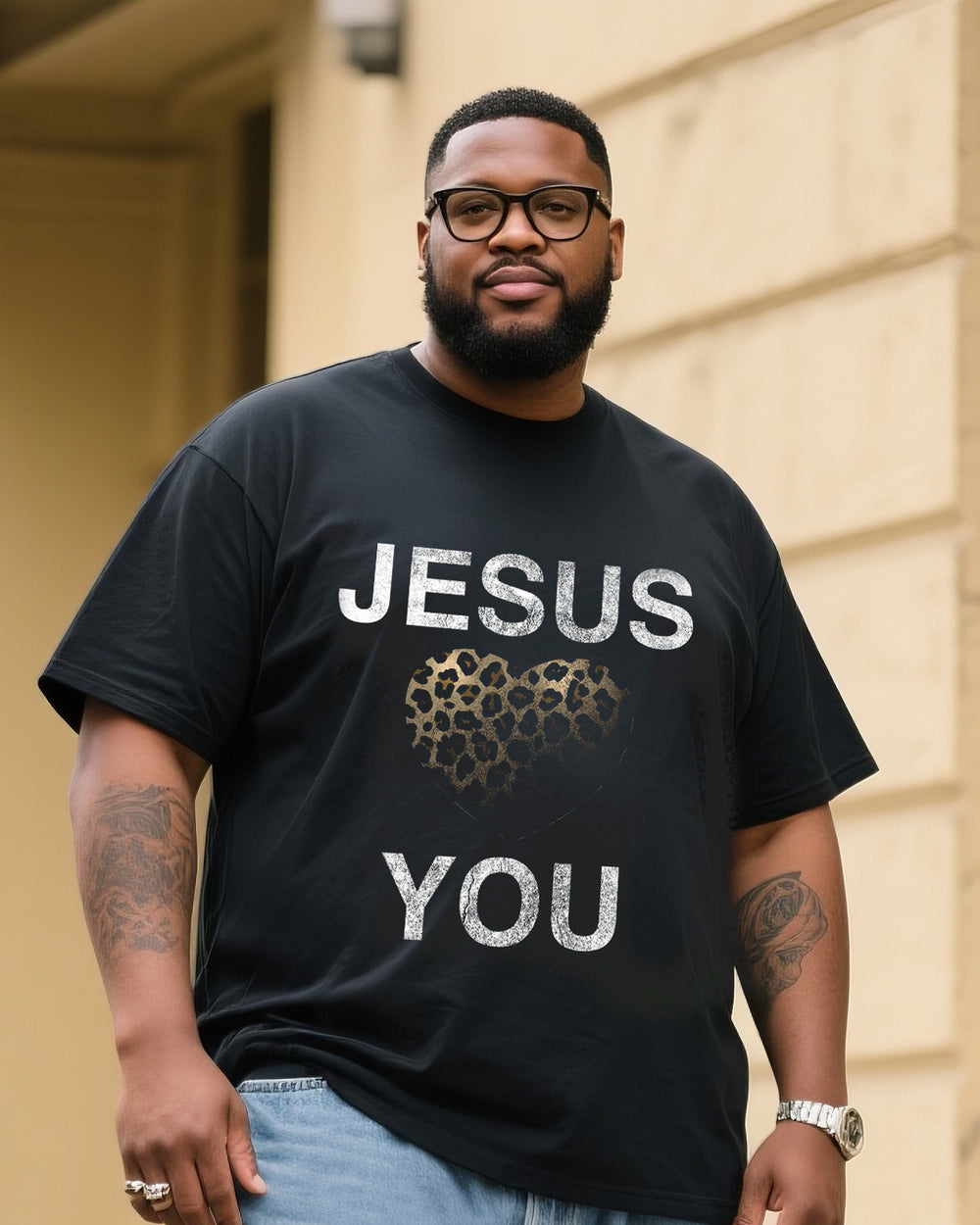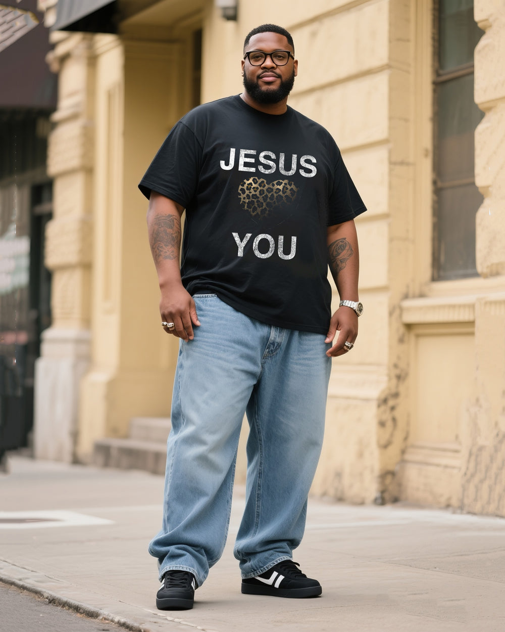 Big & Tall Men's JESUS Love You T-shirt Denim Pants Suit