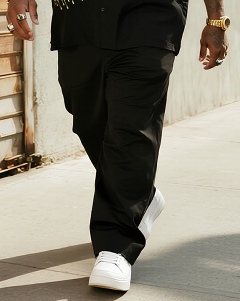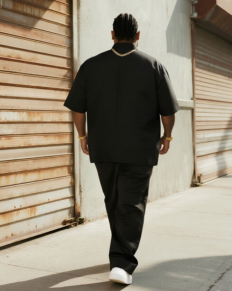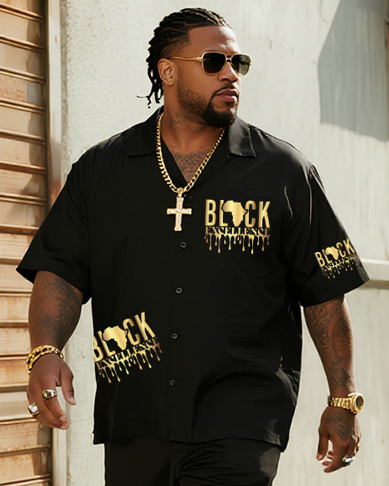 Big & Tall Men's Juneteenth Black History Month Printed Short Sleeve Shirt Trousers Suit