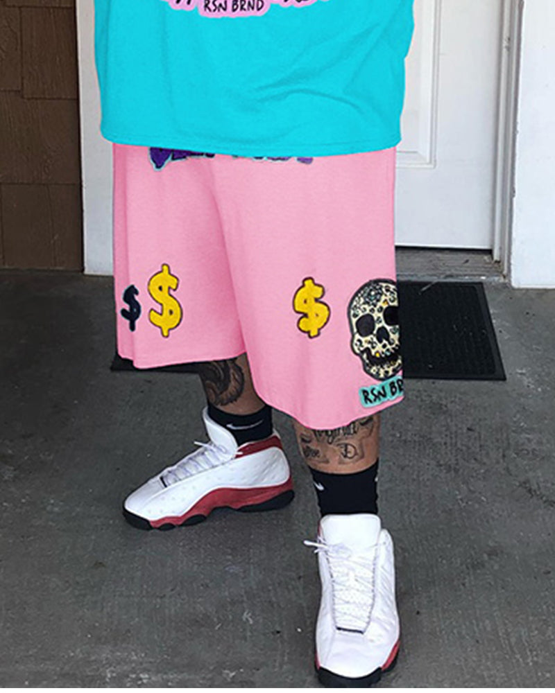 Big & Tall Men's Lake Blue Skull Dollar Printed Crewneck Short Sleeve T-Shirt Shorts Set