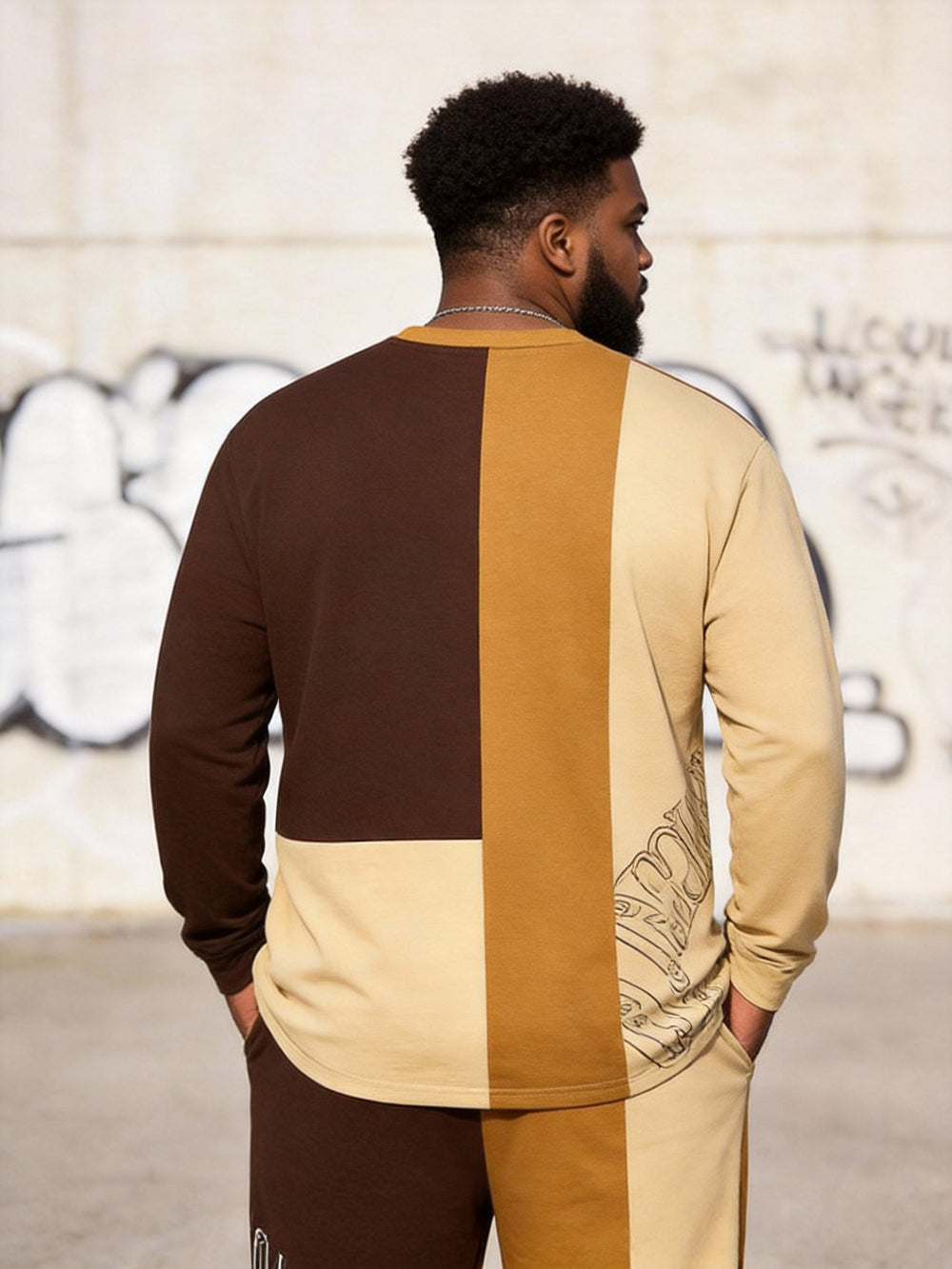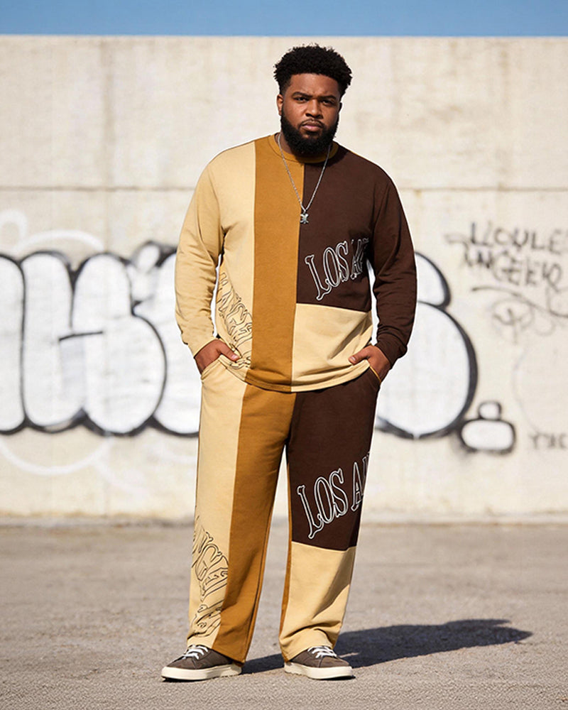 Big & Tall Men's Los Angeles Contrast Patchwork Printed Long Sleeve T-Shirt Pants Set