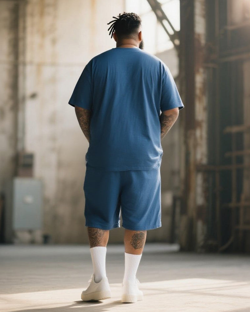 Big & Tall Men's Meer Geht Immer Alphabet Print Round Neck Short Sleeve T-Shirt Shorts Suit