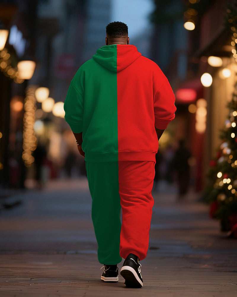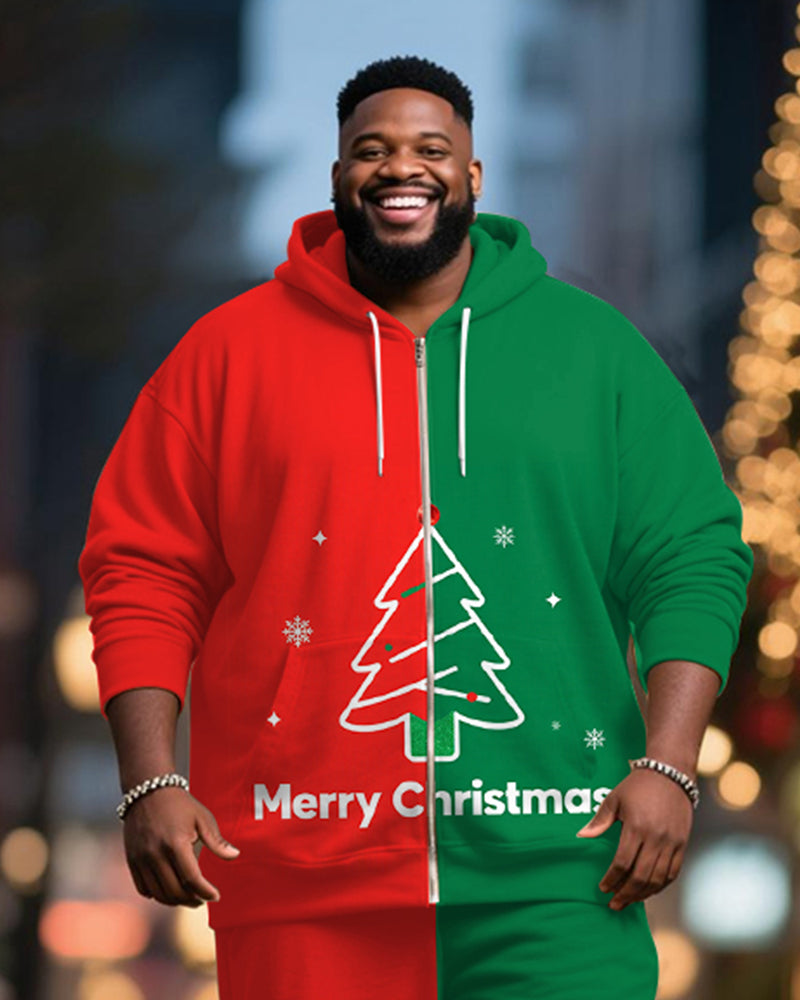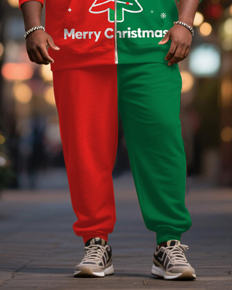 Big & Tall Men's Merry Christmas Colorblock Alphabet Print Cardigan Hoodie Suit