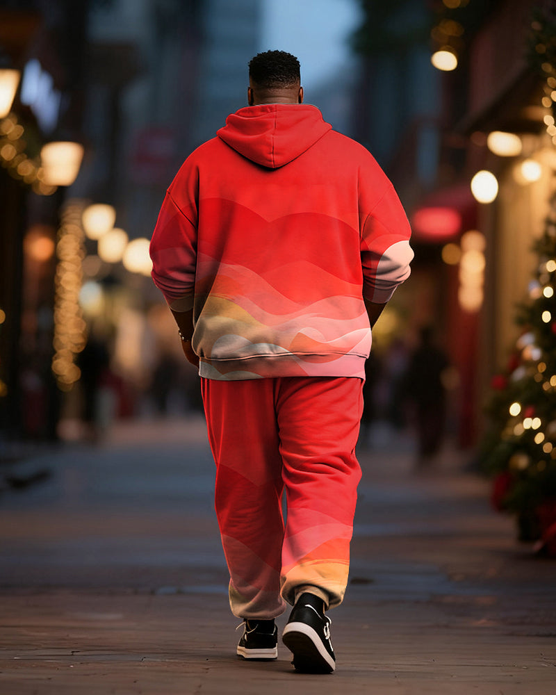 Big & Tall Men's Merry Christmas Gradient Alphabet Print Cardigan Hoodie Suit
