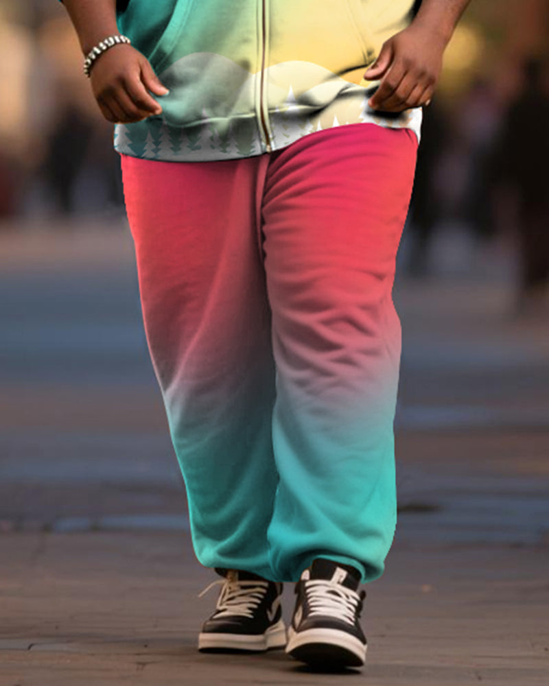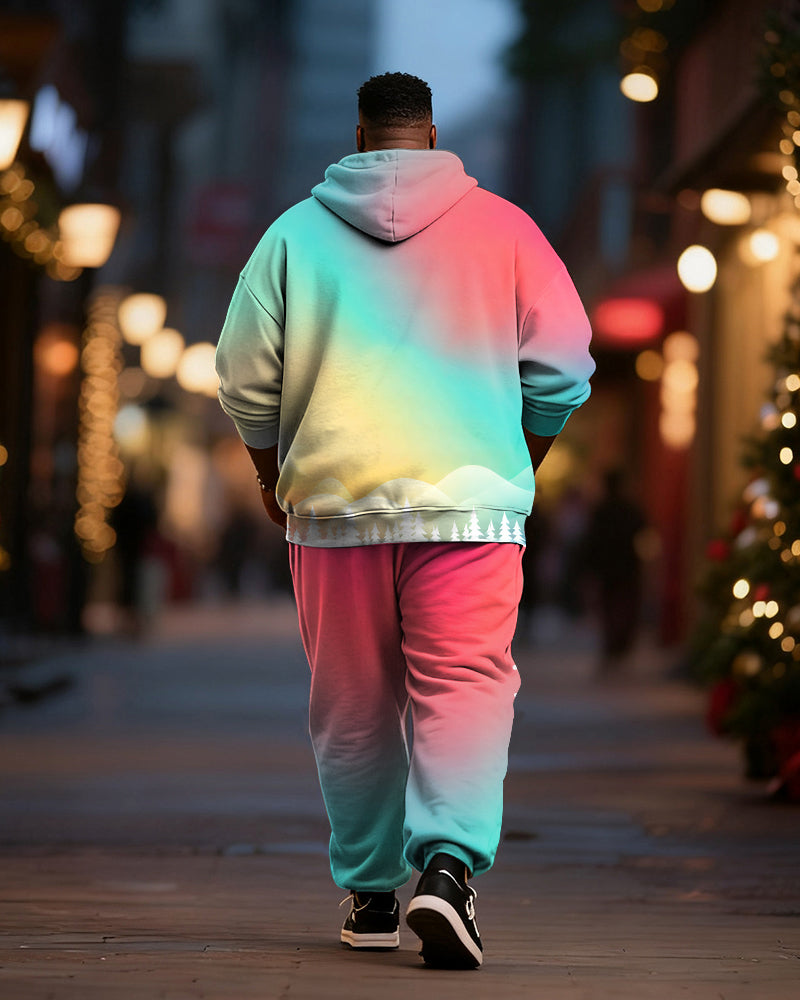Big & Tall Men's Merry Christmas Gradient Alphabet Print Cardigan Hoodie Suit
