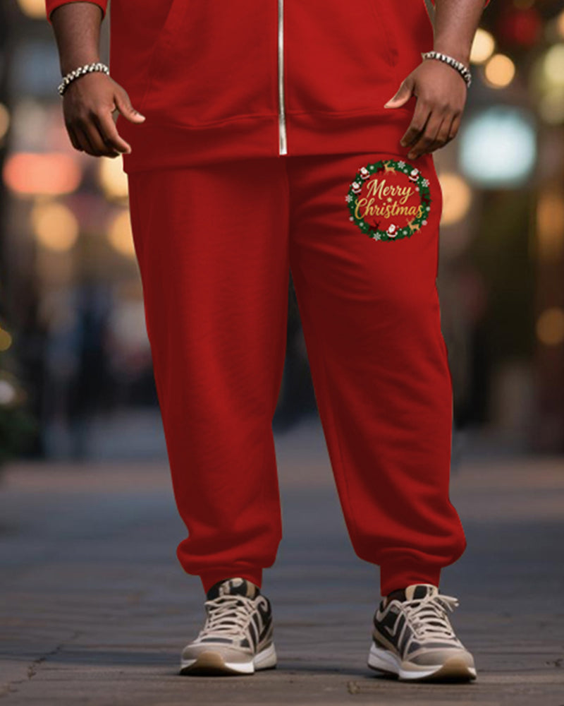 Big & Tall Men's Merry Christmas Letter Print Cardigan Hoodie Suit