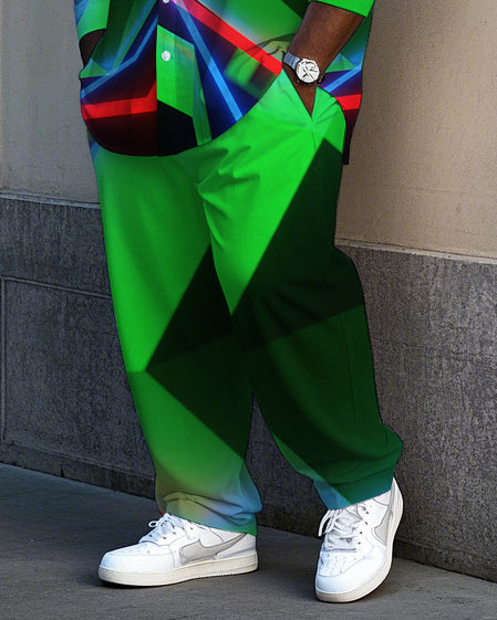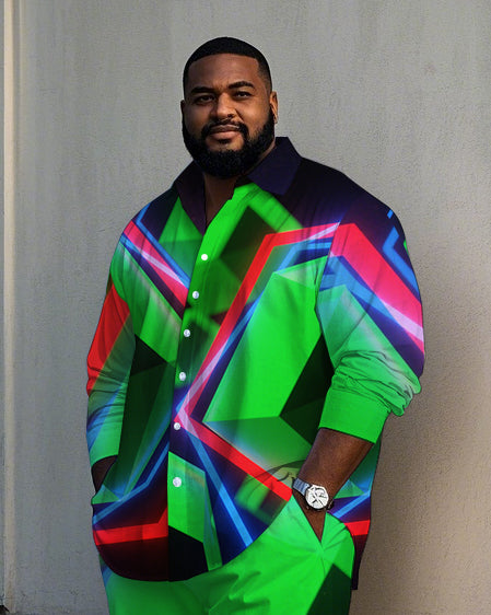 Big & Tall Men's Modern Abstract Geometric Pattern Printed Long Sleeve Shirt and Pants Set