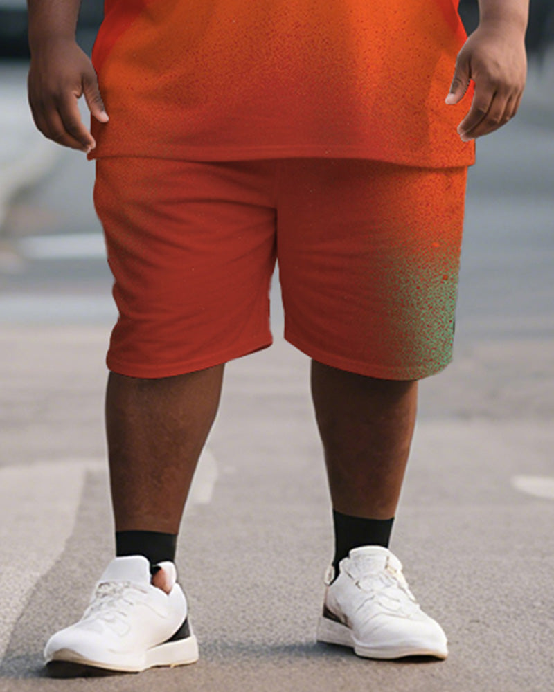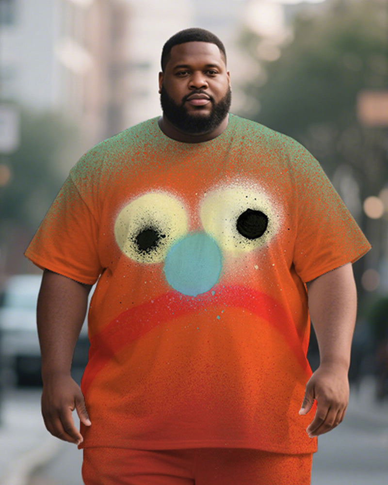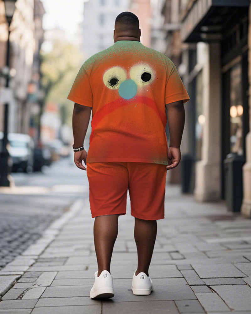 Big & Tall Men's Orange Emoji Graffiti Print Round Neck Short Sleeve T-Shirt Shorts Suit