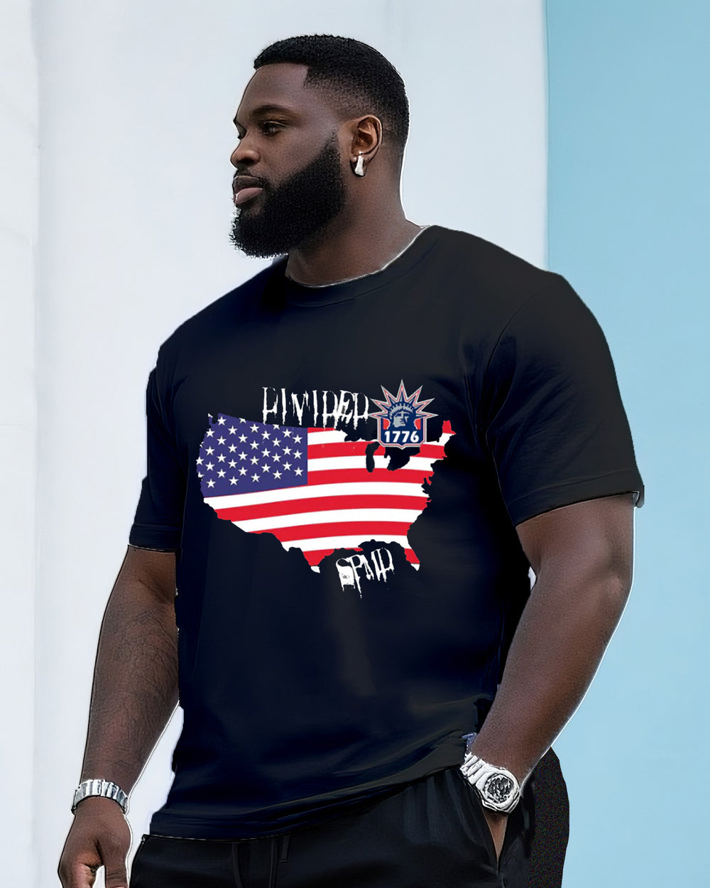 Big & Tall Men's Original Creative Map Flag Print T-Shirt Independence Day Crewneck T-Shirt Shorts Suit