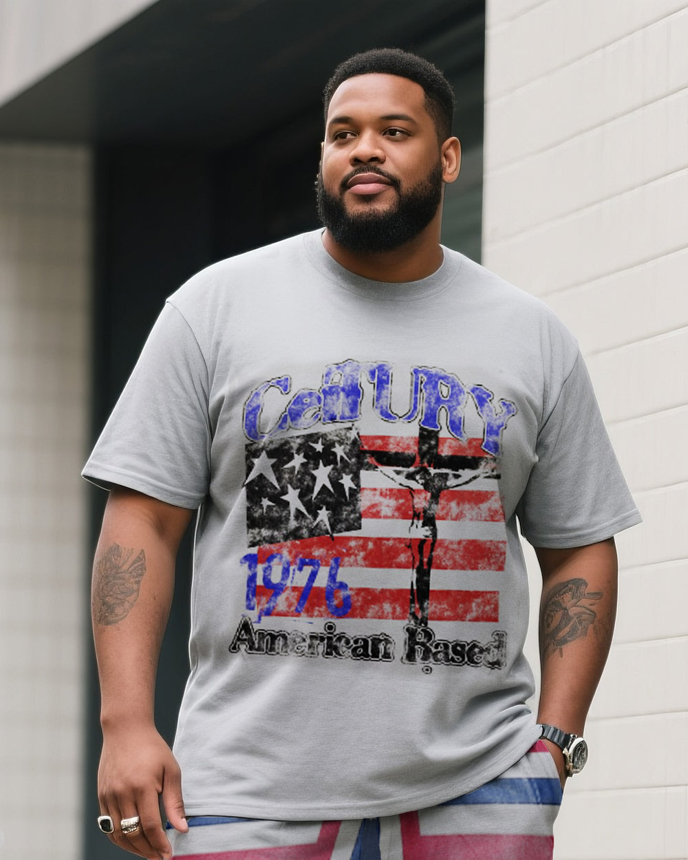 Big & Tall Men's Original Star Flag COD Printed Independence Day Crewneck T-Shirt Shorts Suit