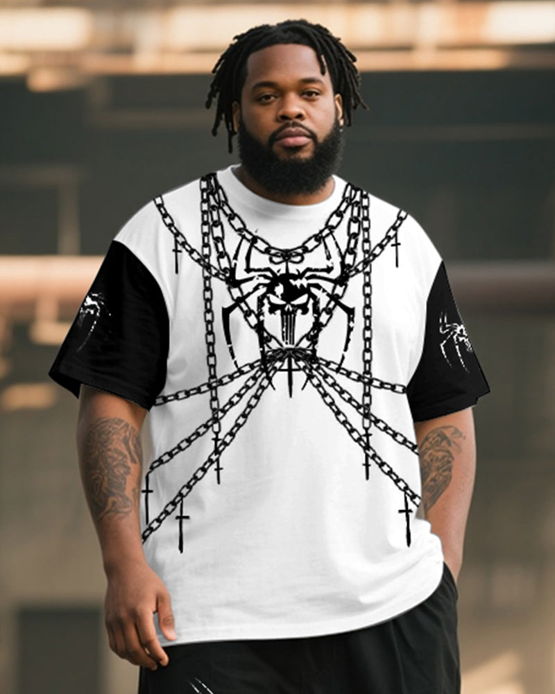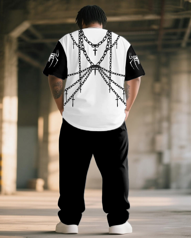 Big & Tall Men's Punk Chain Cross Spider Print T-Shirt Pants Suit