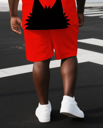 Big & Tall Men's Punk Theme Black Cat Keep Calm Lettering Casual Short-Sleeve T-shirt Shorts Set