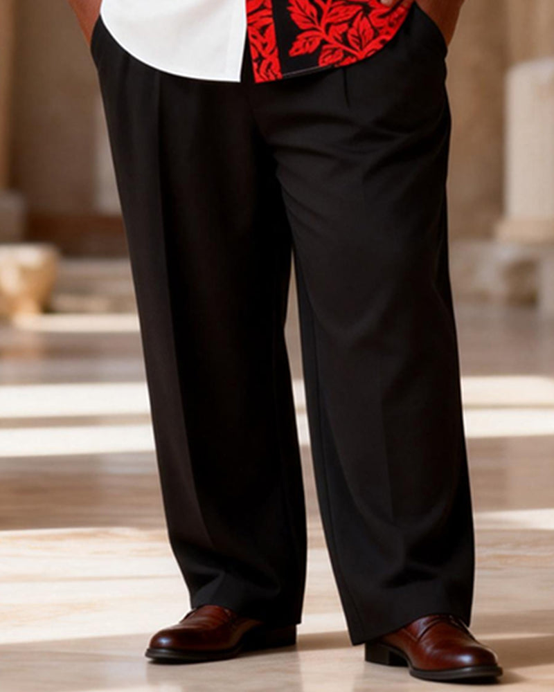 Big & Tall Men's Red And Black Ribbed Contrast Printed Short Sleeve Shirt Pants Set