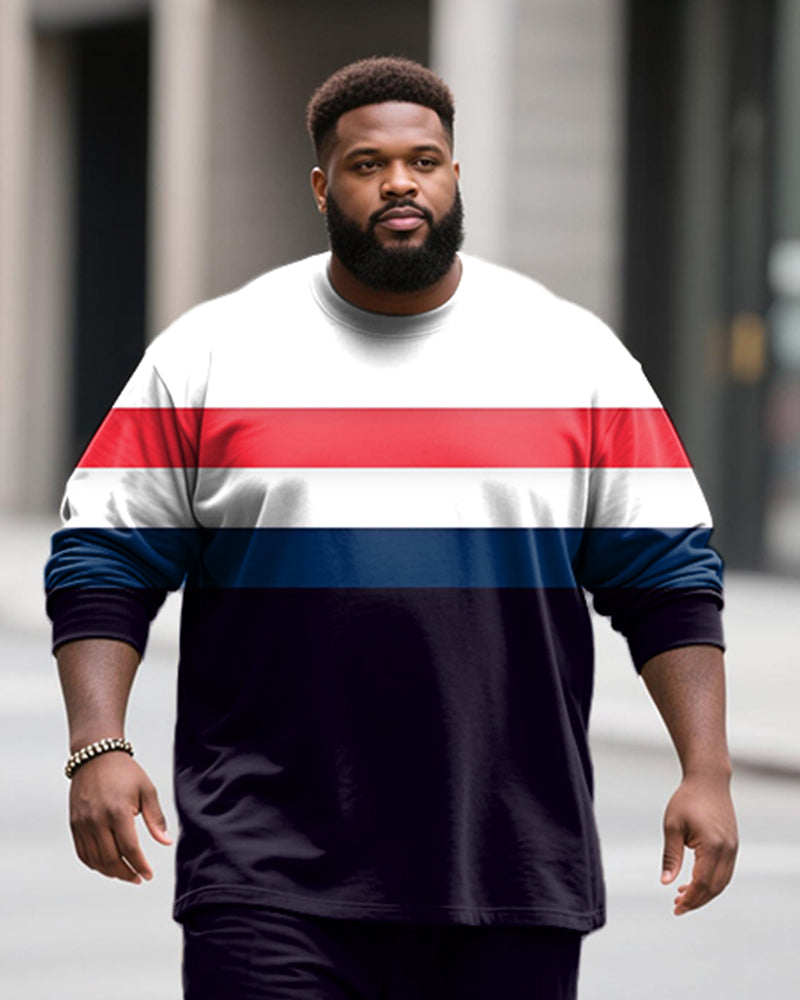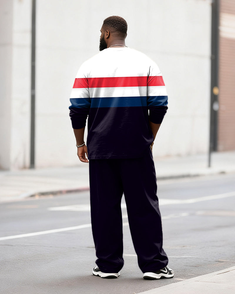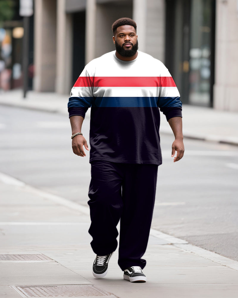 Big & Tall Men's Red Colorblock Stripe Printed Long Sleeve T-Shirt Pants Set
